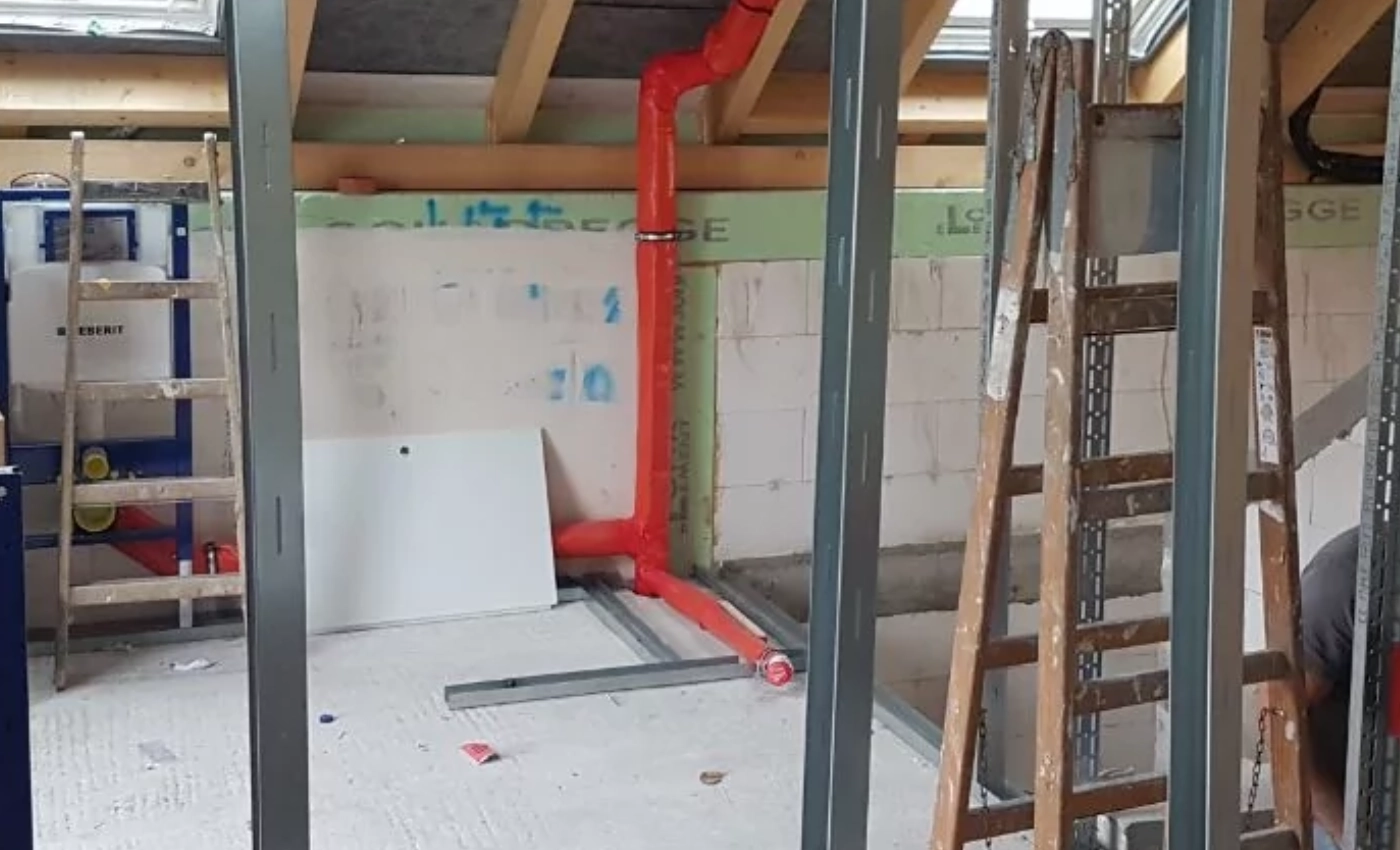 Trockenbau ist die ideale Lösung, um Räume flexibel, sauber und effizient umzugestalten – sei es im Neubau, bei einer Sanierung oder Renovierung. Wir bieten Trockenbauarbeiten für Aschaffenburg und Umgebung mit einem hohen Anspruch an Qualität und Gestaltung. Unser erfahrenes Team begleitet Sie von der Planung bis zur Umsetzung und findet für jedes Raumkonzept die passende Lösung. Ob Trennwände, abgehängte Decken oder Verkleidungen – wir setzen Ihre Wünsche fachgerecht um. Dabei legen wir großen Wert auf ökologische Baustoffe, einen hohen Schallschutz sowie alle Anforderungen an den Brandschutz. Mit unserer langjährigen Erfahrung und regelmäßig geschulten Mitarbeitern garantieren wir eine präzise, zuverlässige Ausführung – für Wohnräume und Gewerbeobjekte gleichermaßen.